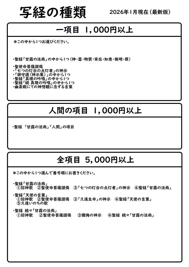 『甘露の法雨』を全項目写経しました。